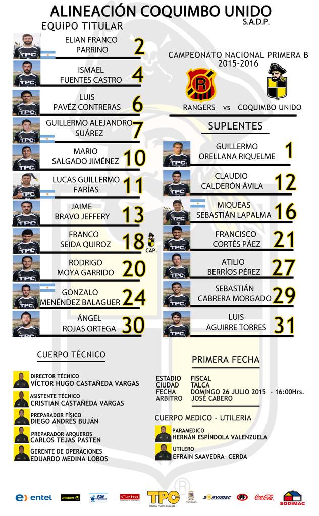 Coquimbo Unido On Twitter Primera Fecha Campeonato 2015 2016 Alineacion Coquimbounido Confirmada Para Enfrentar A Rangers De Talca Http T Co Wyp8tvd1di